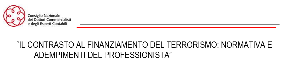 Il crescendo dei noti eventi di matrice terroristica, con le sue numerose implicazioni di carattere finanziario, hanno reso necessaria una nuova analisi degli adempimenti già individuati con riferimento al contrasto del riciclaggio, da parte sia dei professionisti che di tutti i destinatari della normativa antiriciclaggio. Proprio recentemente sia il GAFI che l’UE, hanno messo in evidenza e nelle loro agende sui provvedimenti da emettere, proprio il contrasto al finanziamento al terrorismo in tutte le sue forme e manifestazioni. La consapevolezza del fenomeno del terrorismo e la concreta possibilità che qualsiasi realtà economica possa essere utilizzata come veicolo di approvvigionamento o di smistamento di somme per queste finalità illecite devono indurre il mondo delle professioni a ragionare sulle modalità con cui tutelare concretamente le forze economico-finanziarie sane.